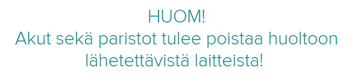 Laitehuoltoon lähetettävät laitteet tulee palauttaa tarvikkeineen, pois lukien akut sekä paristot, jotka tulee poistaa huoltoon tulevista tuotteista ennen huoltoon lähettämistä. Mikäli tuotteeseen halutaan uusi akku huollon yhteydessä, tulee siitä mainita huoltolomakkeessa. Takuu ei ole voimassa, mikäli palautettavaan laitteeseen on tehty pysyviä merkintöjä.